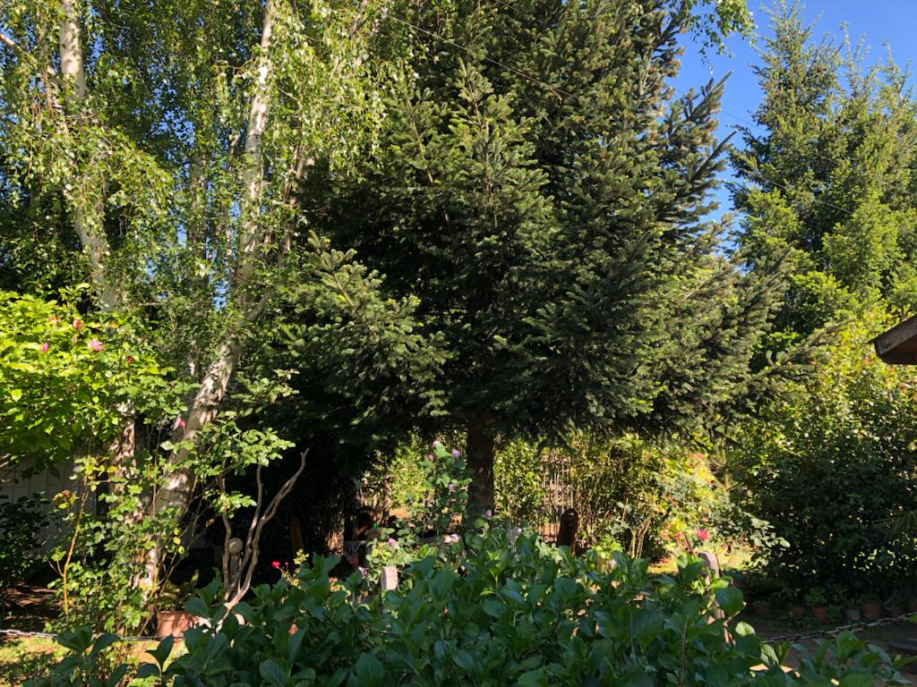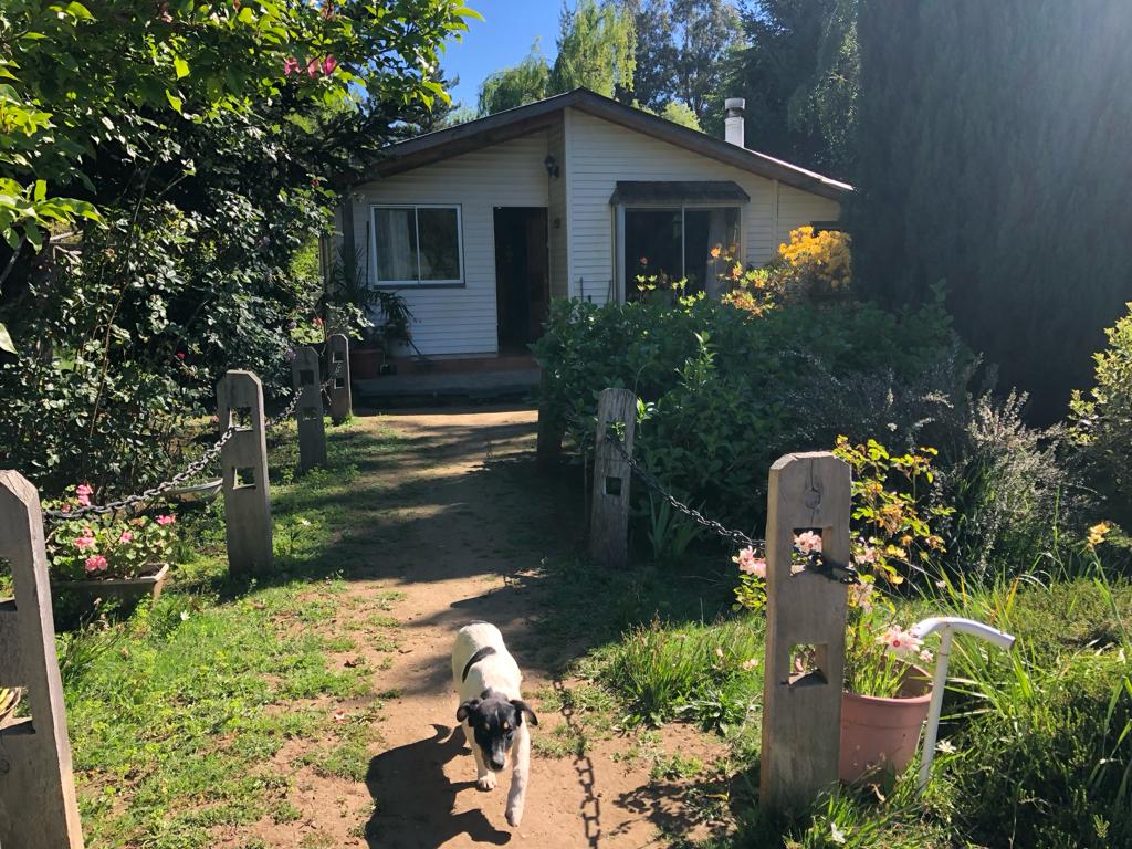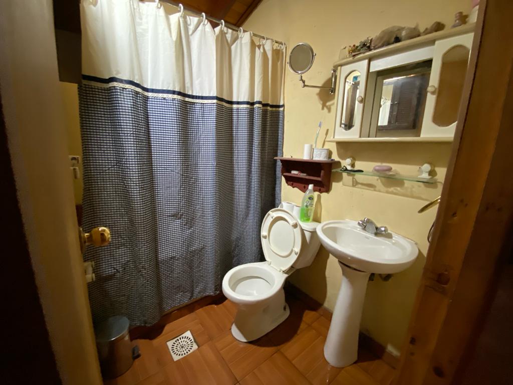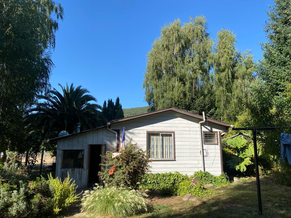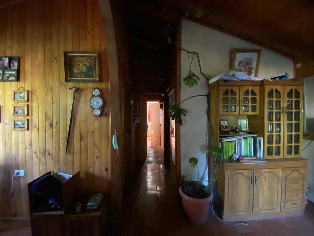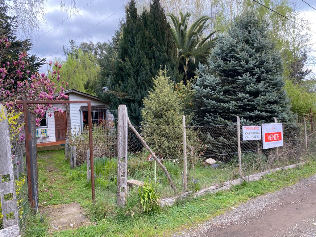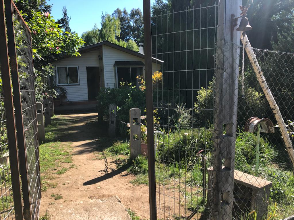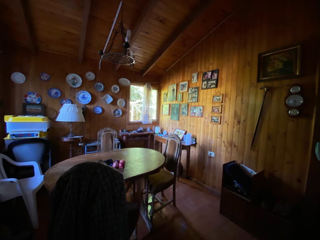 Casa de madera con 2 dormitorios, 2 baños, cocina comedor, living, gran patio con muchos árboles frutales y ornamentales.